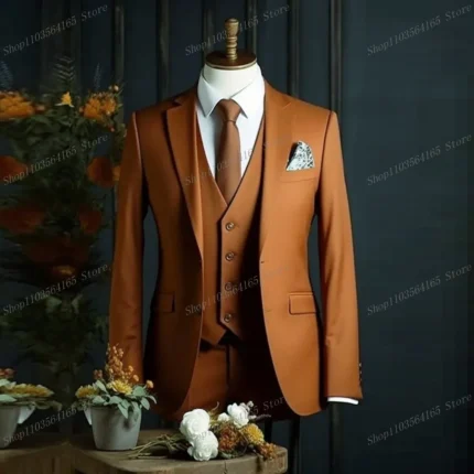 Dark Orange Men Suits Formal Occasion Groom Groomsman Wedding Party Prom Business Male Tuxedos 3 Piece Set Blazer Vest Pants