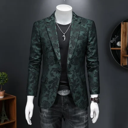 British Style Luxury Jacquard Blazers Men Clothing 2022 Business Slim Fit Casual Suit Coat Men Groom Wedding Suit Printed Blazer