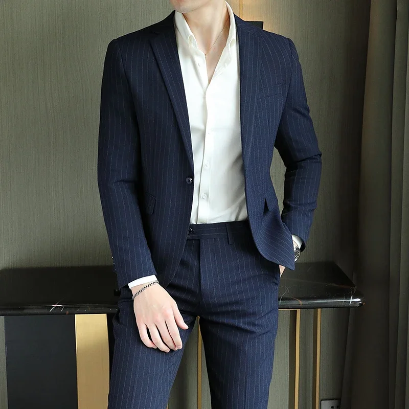 2023Boutique high-end new men (suit + trousers) British wedding party dress fashion business casual trend handsome two-piece set