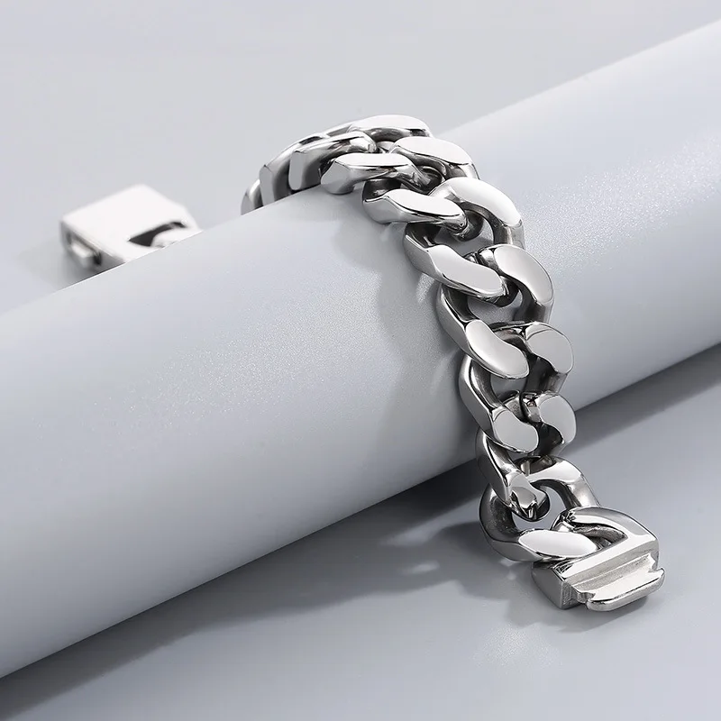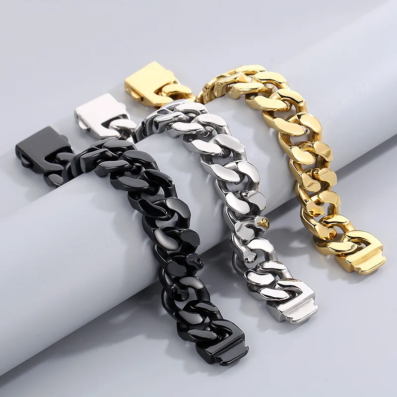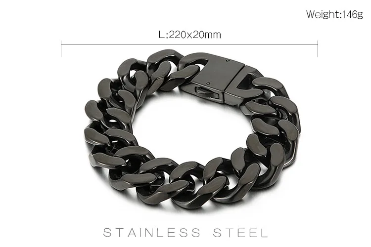 20mm Big Heavy Punk Rock Titanium Steel Cuban Link Chain Bracelets for Men Jewelry Black Gold Silver Color Drop Shipping