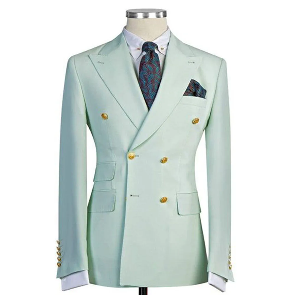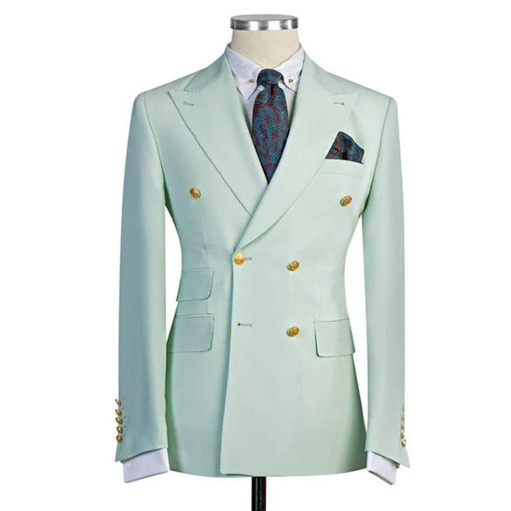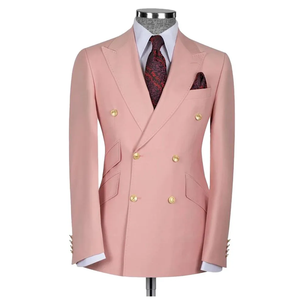 Fashion Green Pink Men’s Suits Double Breasted 2 Pieces Jacket Pants Male Clothing Formal Business Banquet Party Blazers Sets