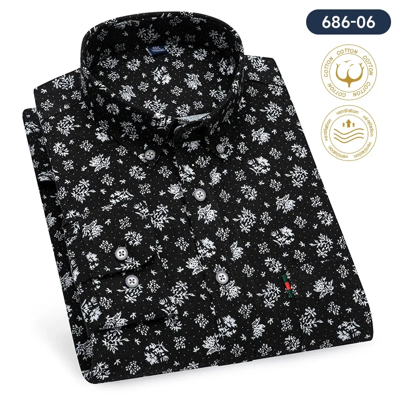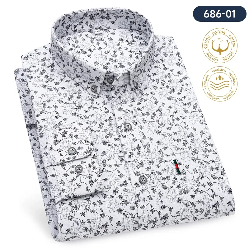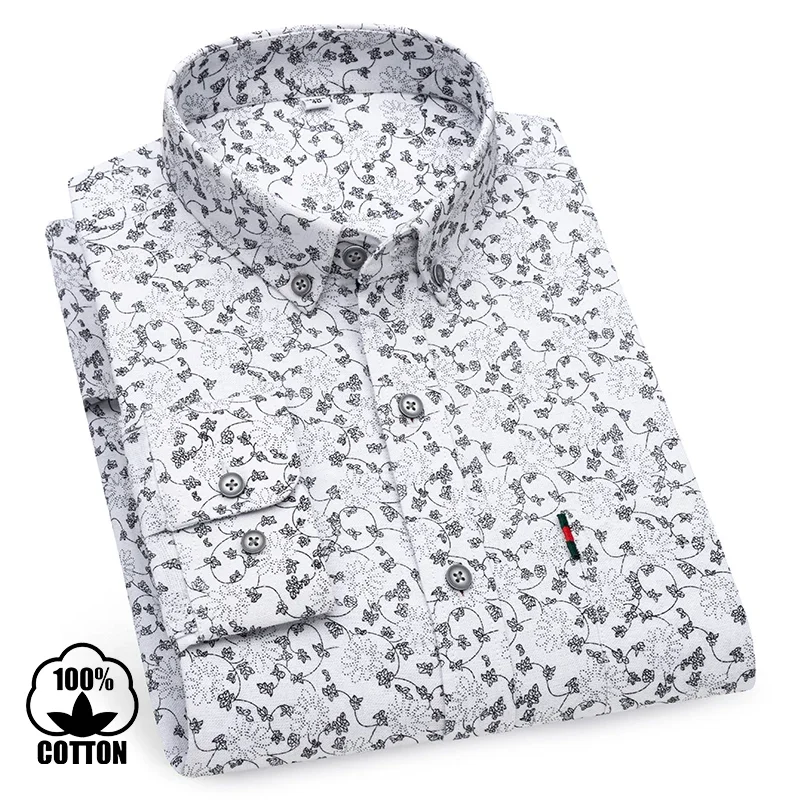 Fashion korean100%cotton casual long-sleeve shirts for men slim fit plain tops print designer vintage elegant clothes streetwear