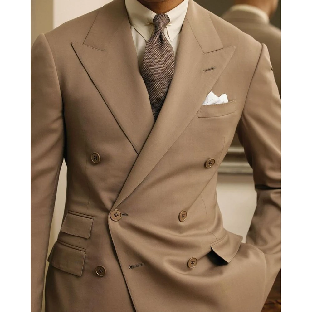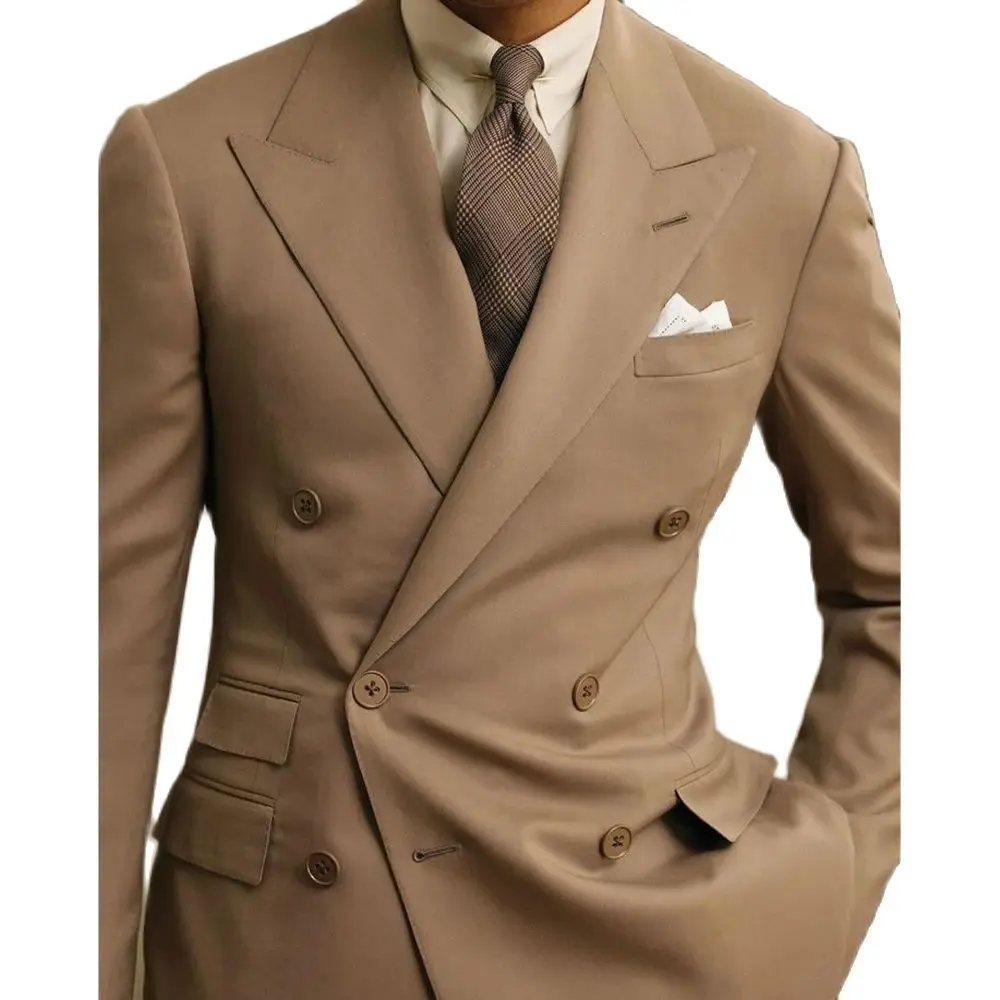 Luxury Double Breasted Men Suits Peak Lapel Slim Fit Casual Male Clothing High Quality Prom Party Business 2 Piece Jacket Pants