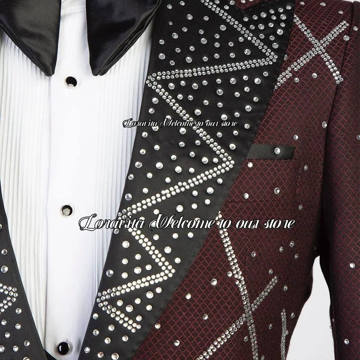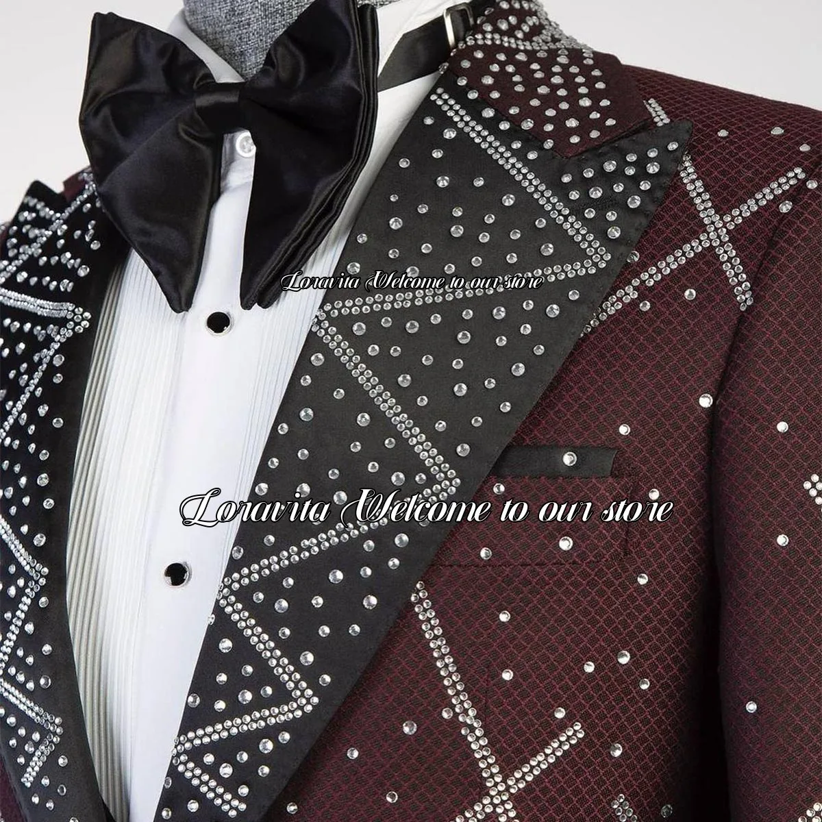 Luxury Sparkling Crystal Tuxedos Men Suits Fashion 3 Pieces Set Wedding Groom Slim Fit Male Prom Blazers Party custom made suits