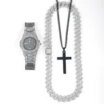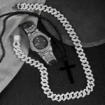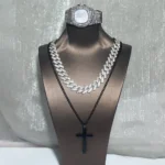 Be the first to review “Men Black Watch Jewelry Set Hip-hop Punk Iced Out Cuban Chain+Stainless Steel Cross Pendant Necklace Stylish Men Women Gift Set”