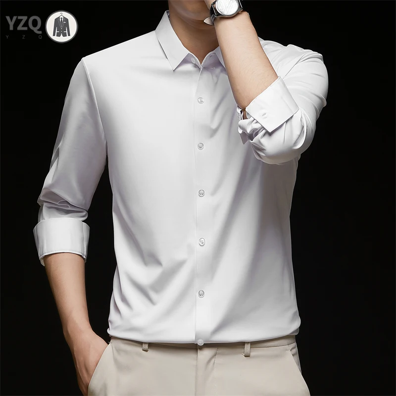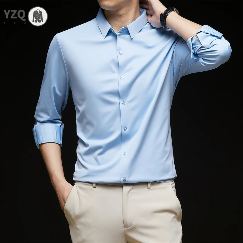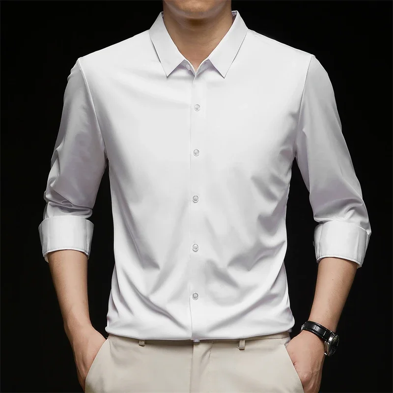 New Men’s Business Casual Long Sleeved Solid Color Shirt Wrinkle Resistant Wrinkle Free Comfortable All Season Versatile Top