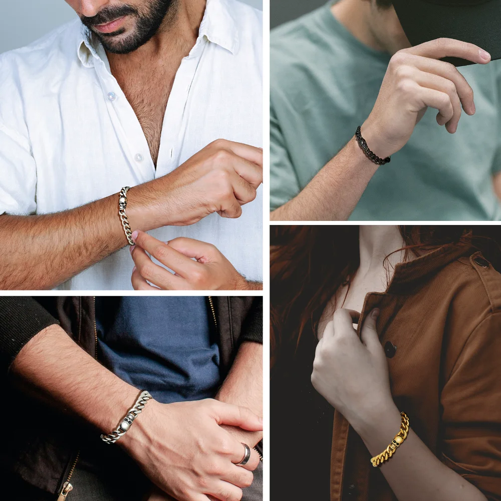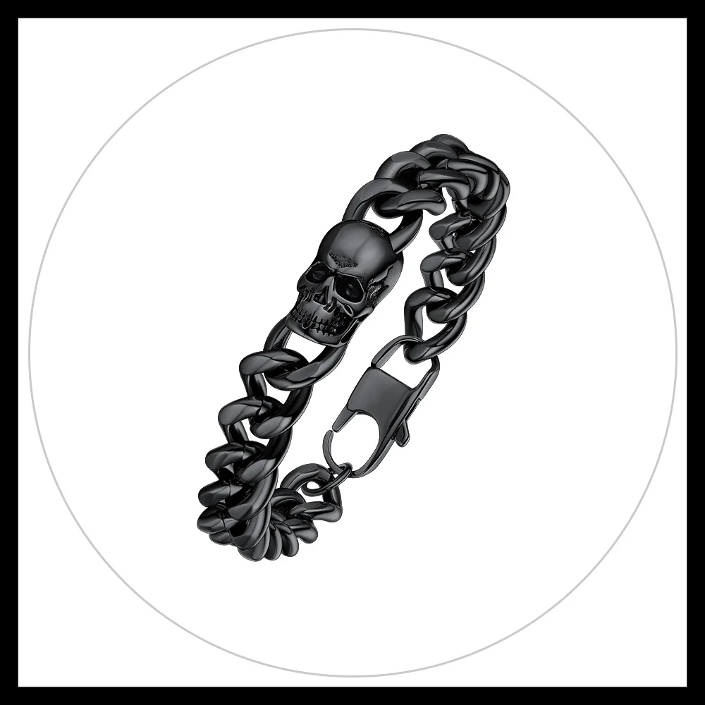 Be the first to review “Prosteel 14K Gold Plated Skull Head Bracelets for Men Stainless Steel Black Plated Goth Cuban Chain Bracelet Fahion Jewelry Gift” Cancel reply