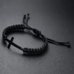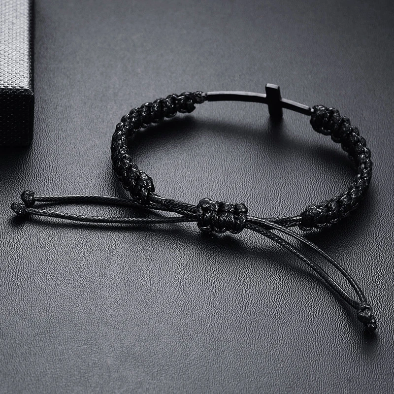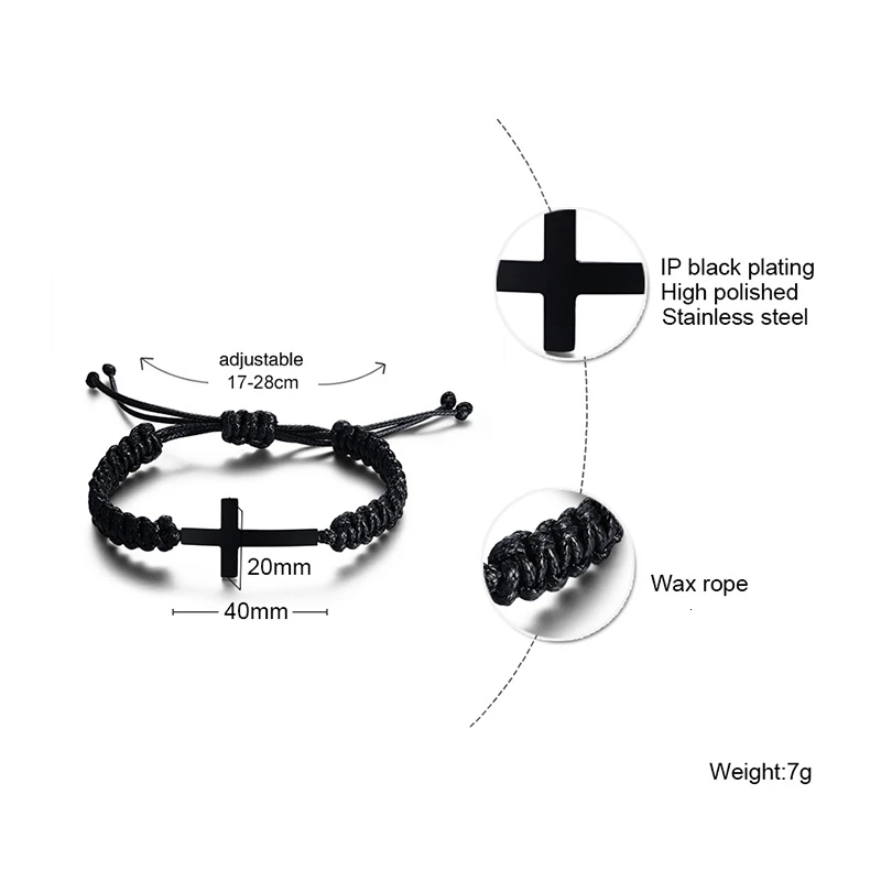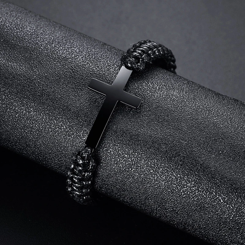Vnox Black Cross Charm Bracelet for Men Teens Boy Braided Rope Chain Unisex Handmade Jewelry